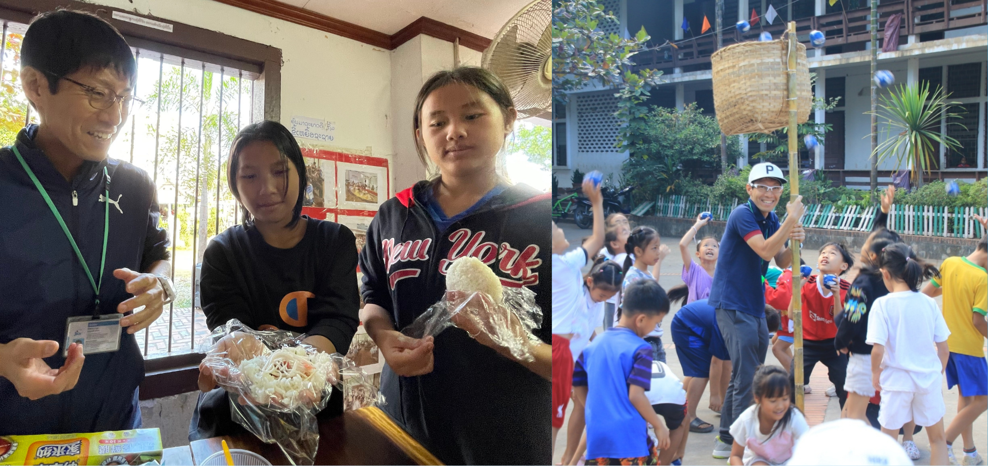 次に「ラオス青少年の情操教育の補完」では、異文化体験を通じた多様性理解とオープンマインドの醸成に力を入れています。具体的には、日本の言葉や音楽、スポーツ、遊びや食事などを体験学習してもらい、子どもたちの視野の拡大を図っています。2025年2月には「日ラオス外交関係樹立70周年記念事業」として、子ども文化センターの子ども13名が、日本の支援団体から招待を受け渡航、私も同行しました。子どもたちが、日本のみなさんの前でラオスの伝統芸能を披露することができたことは、私にとってもとても嬉しいことでした。高校生との文化交流などもでき、ラオス・日本両国の相互理解を深めることができました。