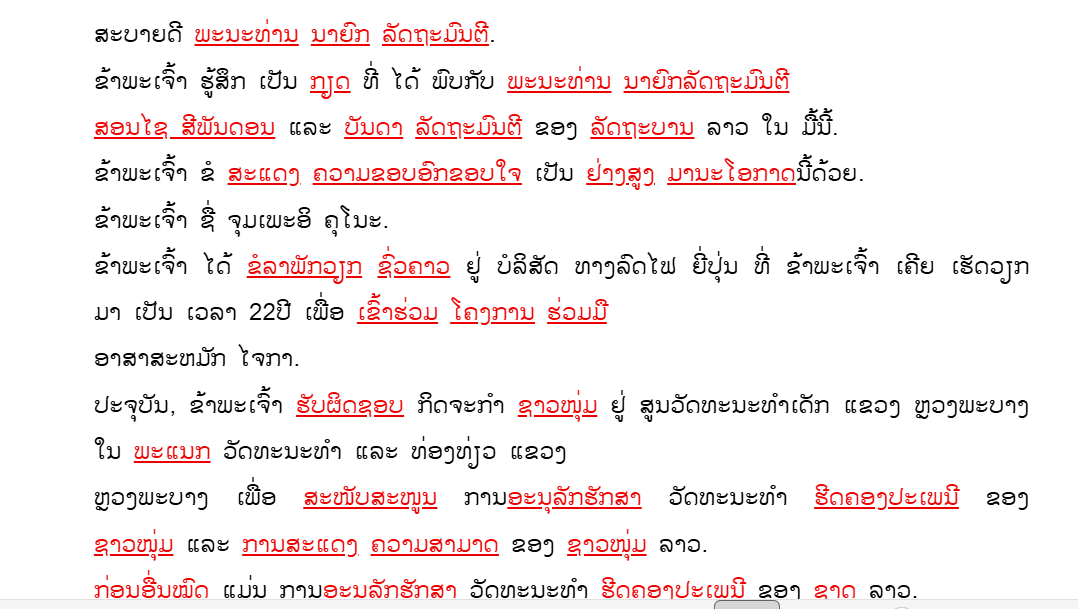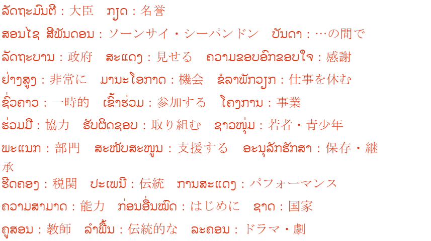 ラオス語のスピーチ原稿一部(何度も読んで練習をしました)