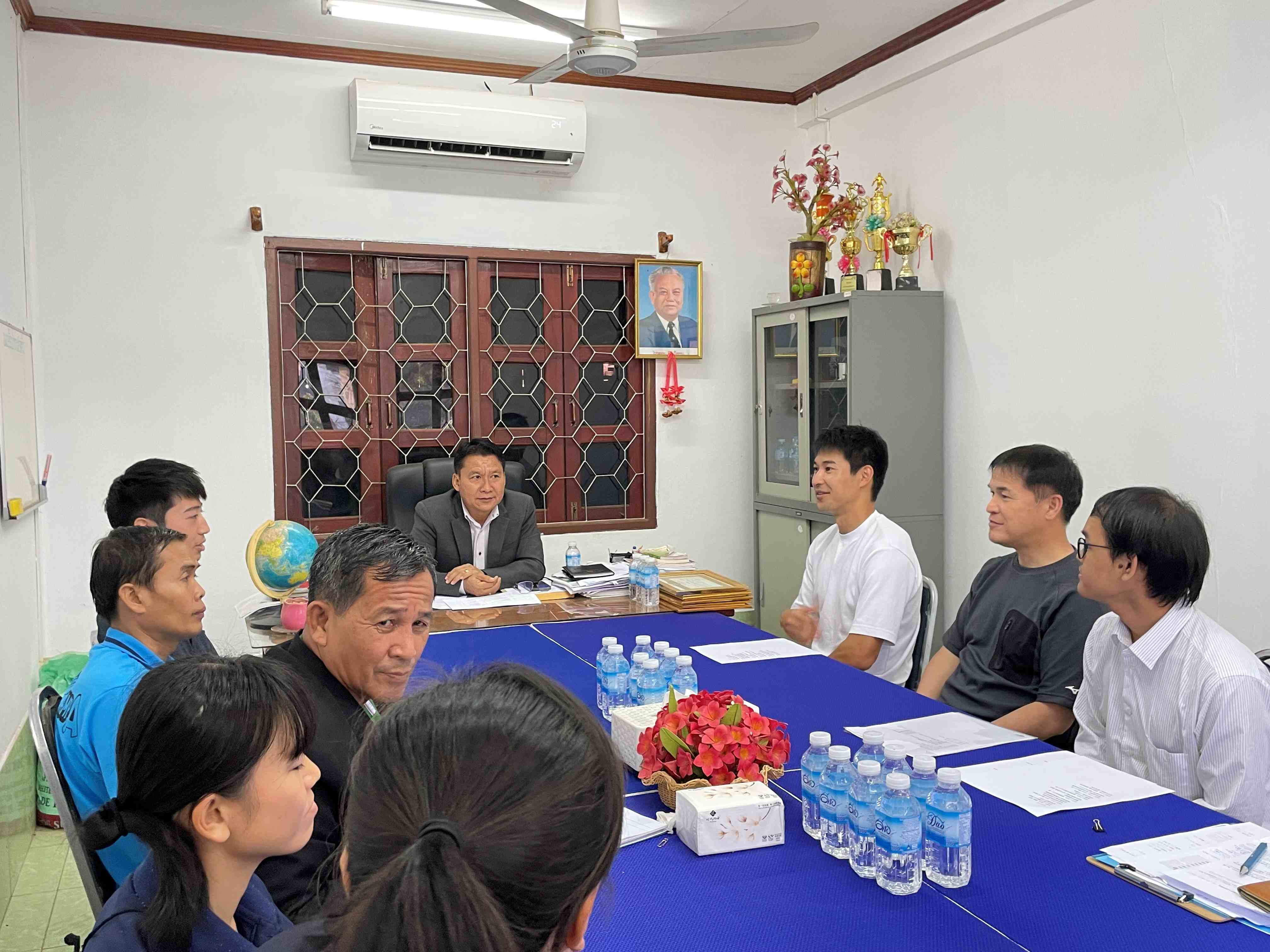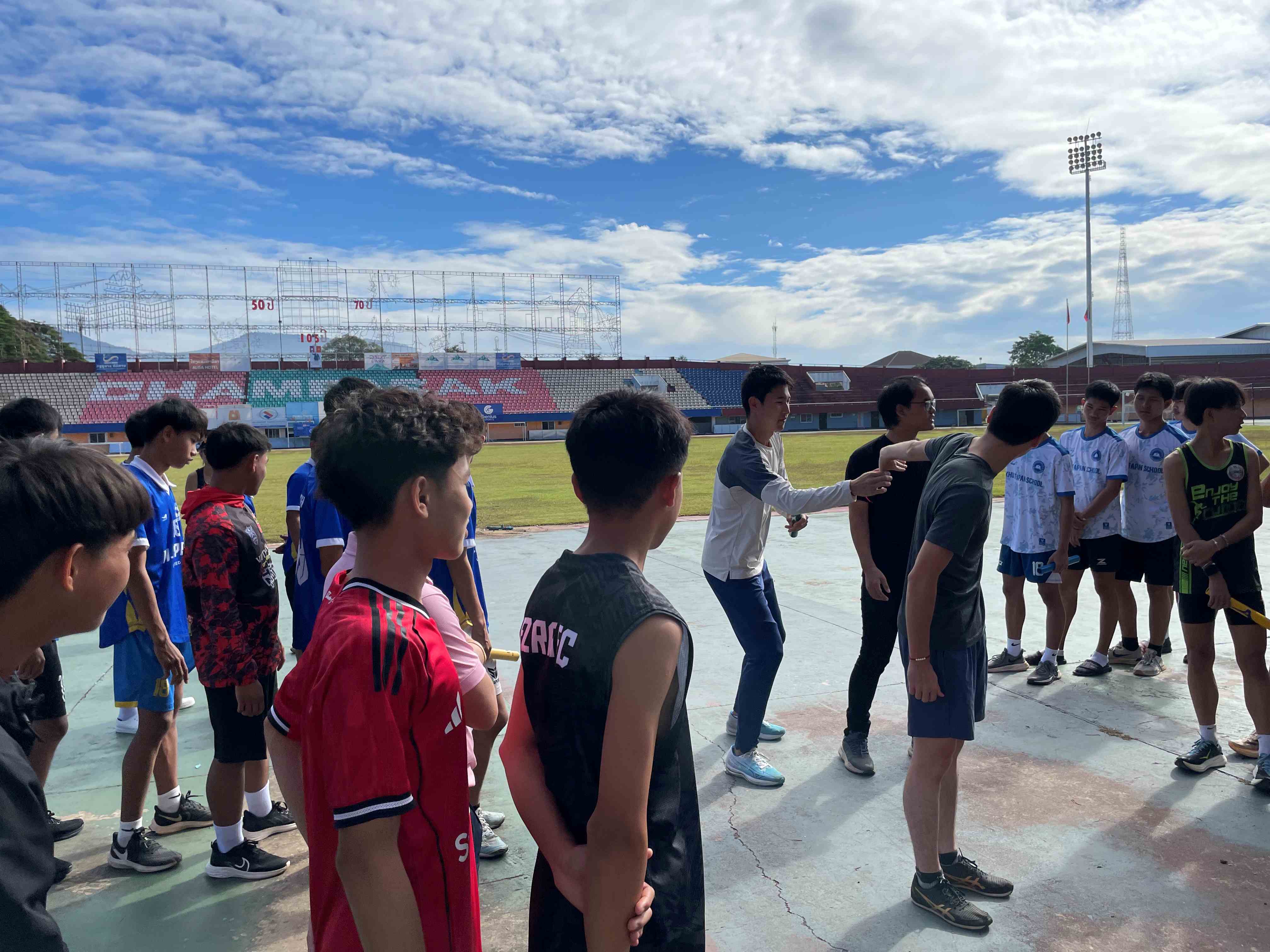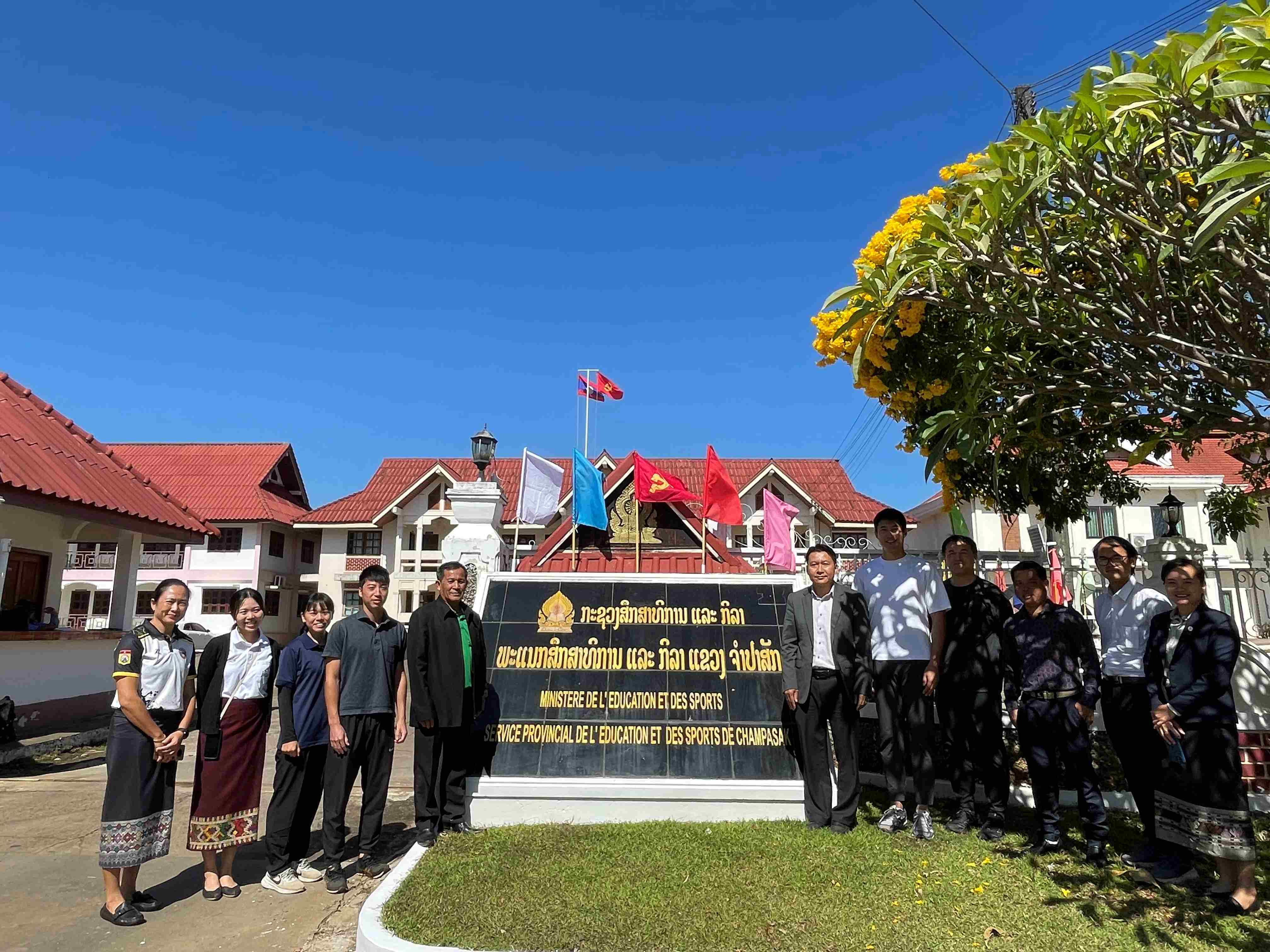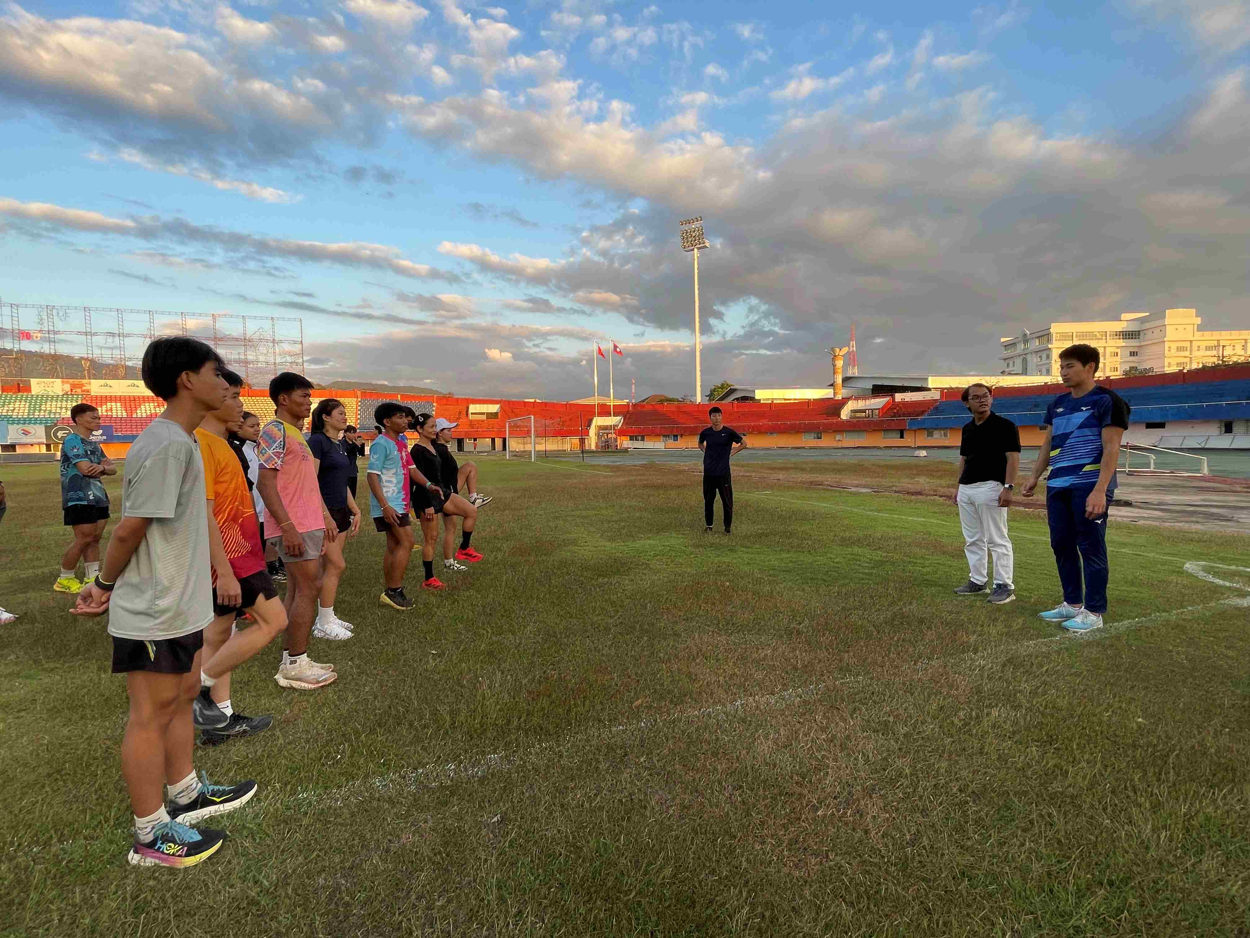 今回、主な舞台となったのはラオスの首都ビエンチャンから南に約700km、チャンパサック県のパクセー市です。 まずは県教育局に表敬訪問を行い、その後は中高一貫校を訪れて、体育の授業を見学。さらに陸上競技場へと場所を移し、暗くなるまで技術指導を行いました。