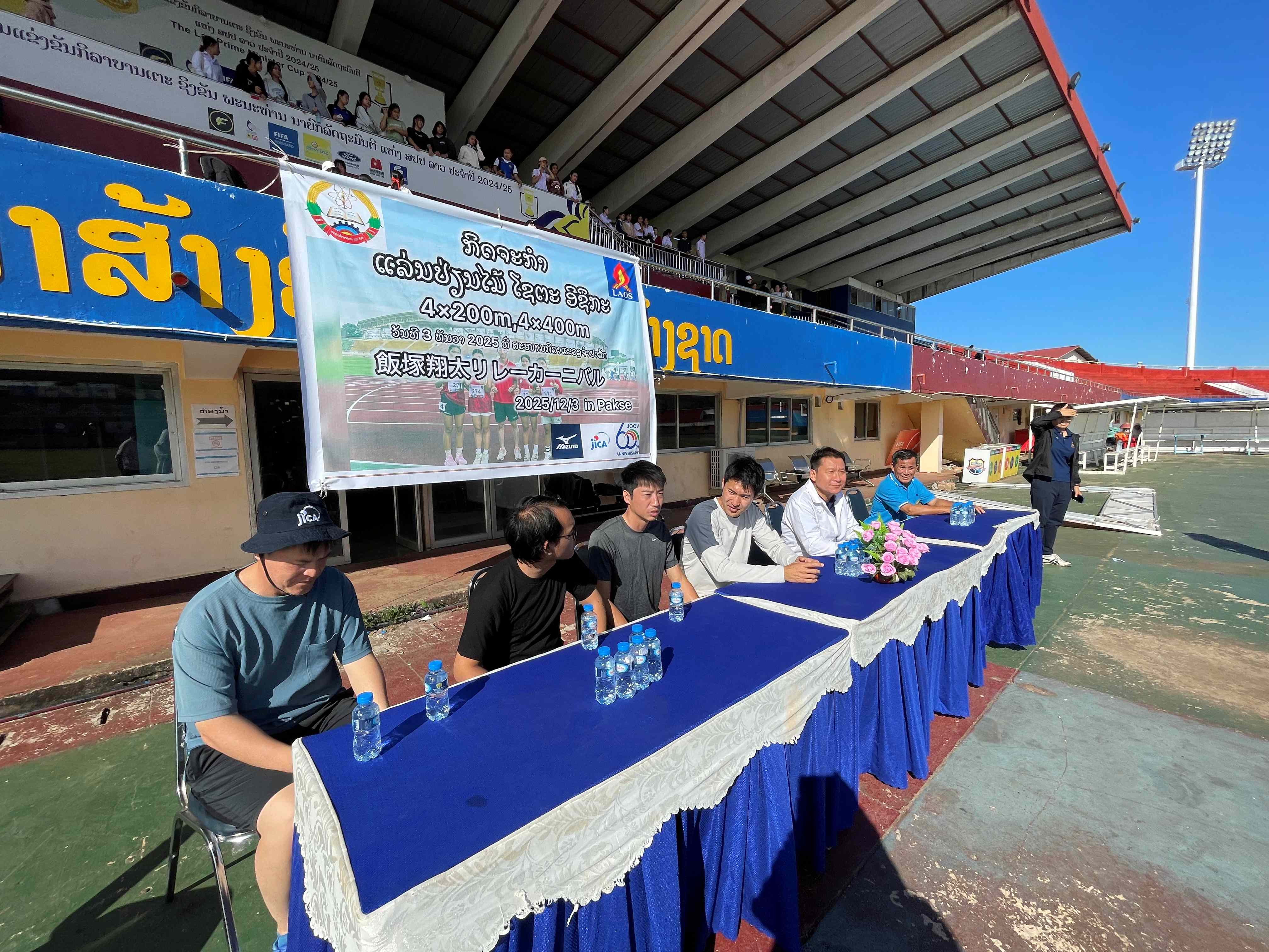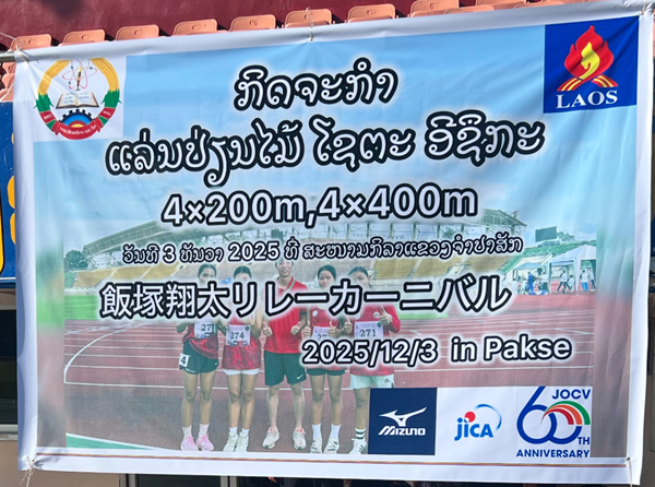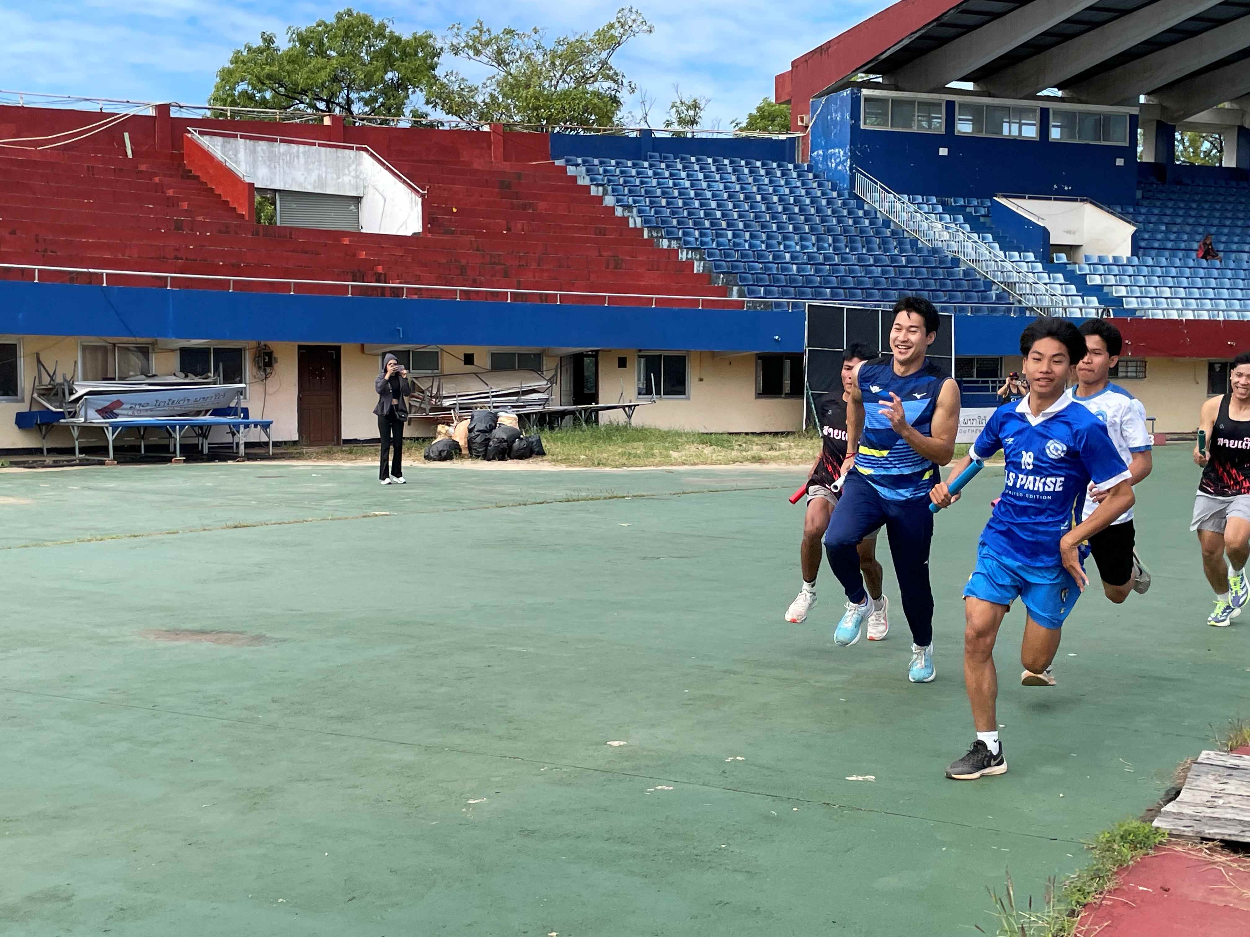 そして12月3日、今回のメインイベントとも呼べるリレー大会が開催されました。 大会の名前は「飯塚翔太リレーカーニバル」。競争を目的とした大会ではなく、スポーツを楽しむことを目的としたいと、桐原隊員が大会名を工夫しました。 澄み切った青空のもと、大変多くの方が集まり、男女混合10チームのリレーでバトンを繋ぎました。 ラオスらしく、最後の1人まで大歓声で応援、笑顔あふれる楽しいリレー大会となりました。