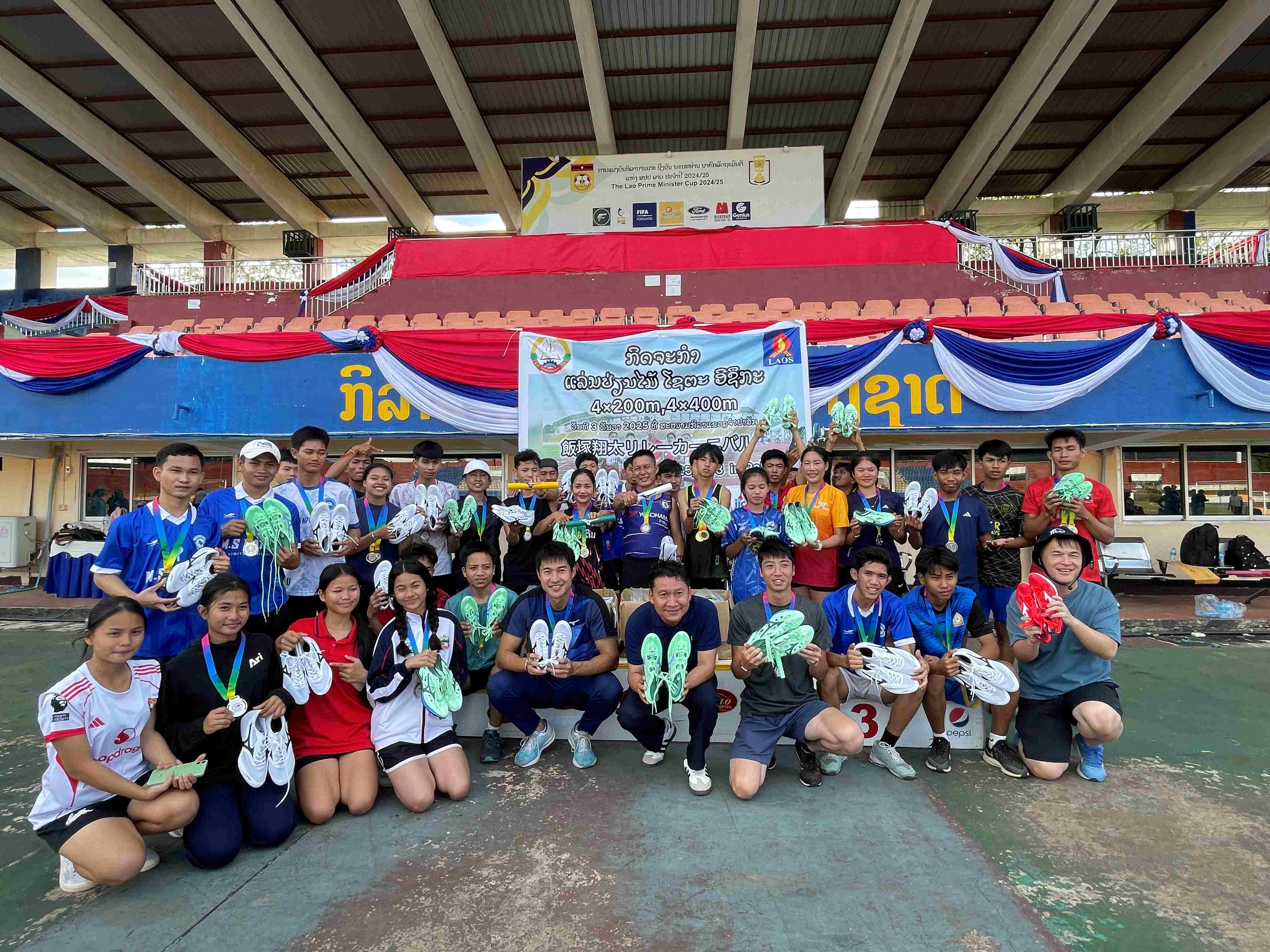 ミズノよりシューズとバトンの寄贈。これからも陸上競技を楽しんでいただきたいです。