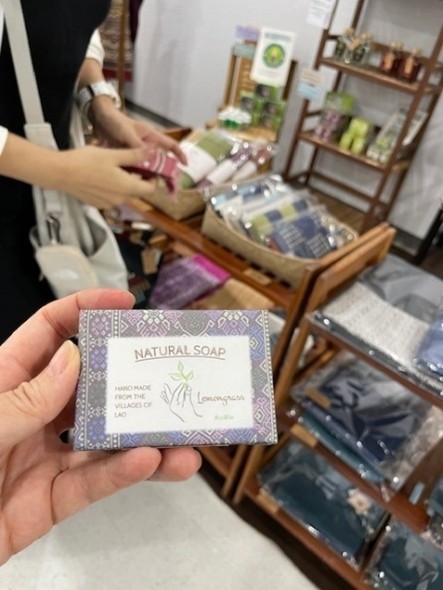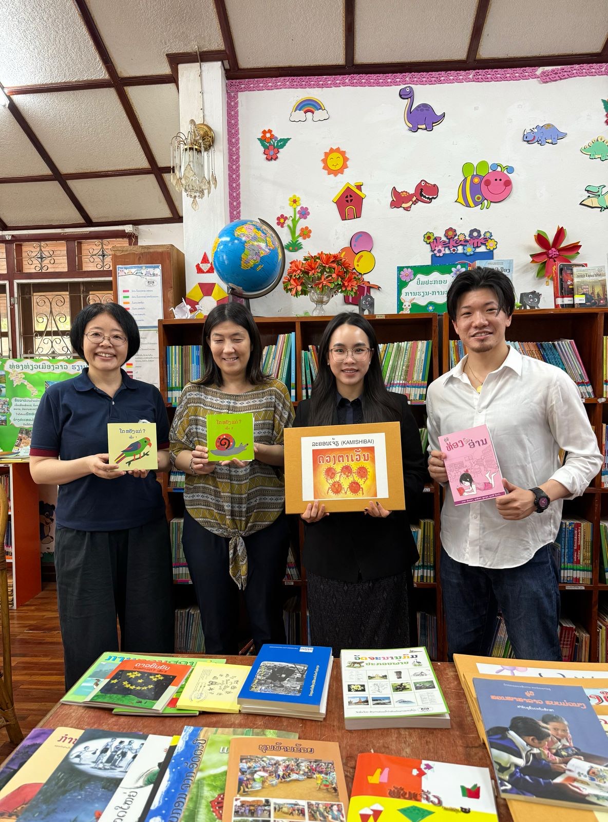 2月から4月にかけて、ラオス産の手工芸品の認知度向上や、販路開拓、生産者の収入向上などを目的にした展示販売イベントを、首都のワッタイ国際空港で開催しました。 その売上金の一部を活用し、ラオス企業やNGOと協力して、ラオス語絵本を小学校などへ寄付しました。