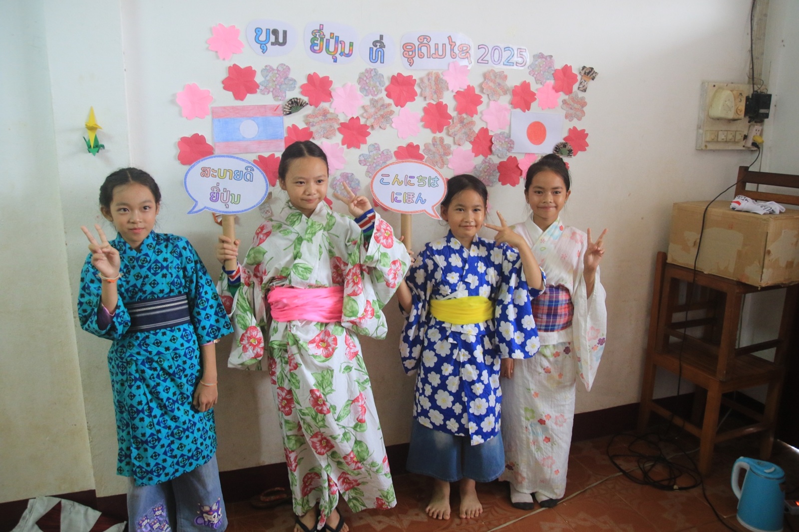 7月には、ウドムサイ県派遣の隊員3名が中心となり、子ども文化センターで日本祭りを開催しました。週末とあって地元の子どもたちが大勢駆け付け、浴衣の着付け、よさこい踊りや、つきたてのお餅を楽しむなど、隊員との文化交流を楽しみました。