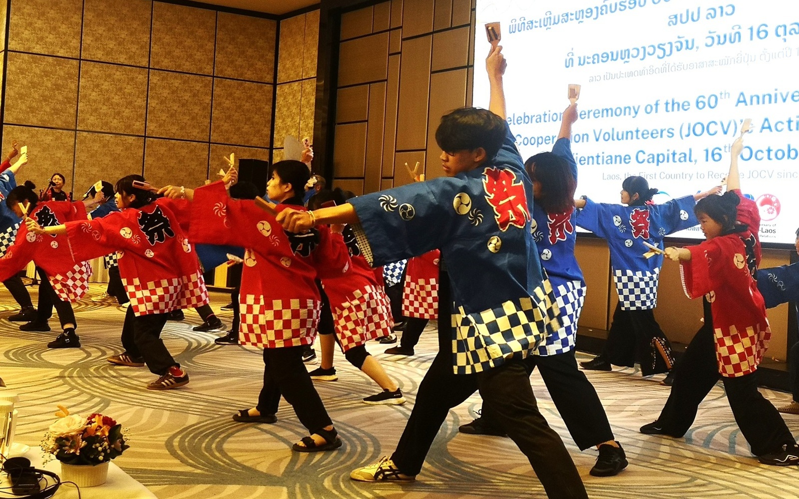 10月16 日、ラオスで活動する全JICA海外協力隊員によるソーンサイ・シーパンドン首相への表敬訪問とJICA海外協力隊ラオス派遣60周年記念式典が、首都ビエンチャンで行われました。首相表敬では隊員代表によるラオス語でのスピーチ、式典では柔道の演武やよさこい踊り、隊員写真の展示などが行われ、日本・ラオスの各メディアで紹介されました。あらためて多くのラオスの方々に、JICA海外協力隊の歴史とラオスとの絆を知っていただける機会となりました。