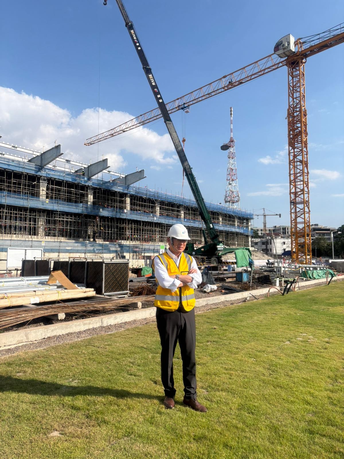 岡田さんにも建設中のスタジアムを見ていただきました