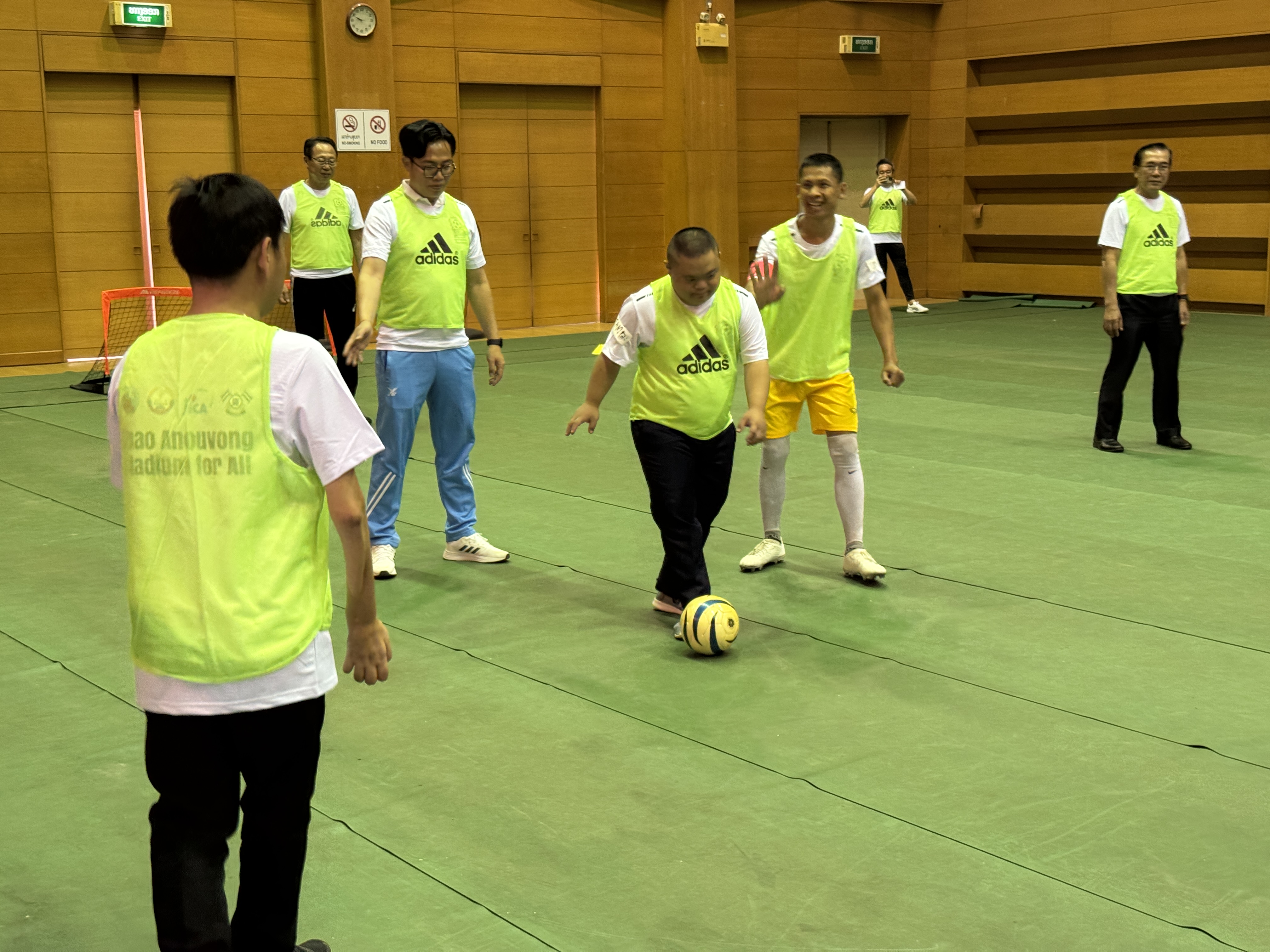 この度、JICAラオスのインクルーシブ・スタジアム関連イベントとして、12/23(火)にビエンチャンの武道センターにおいて、インクルーシブフットボール教室を開催いたしました。