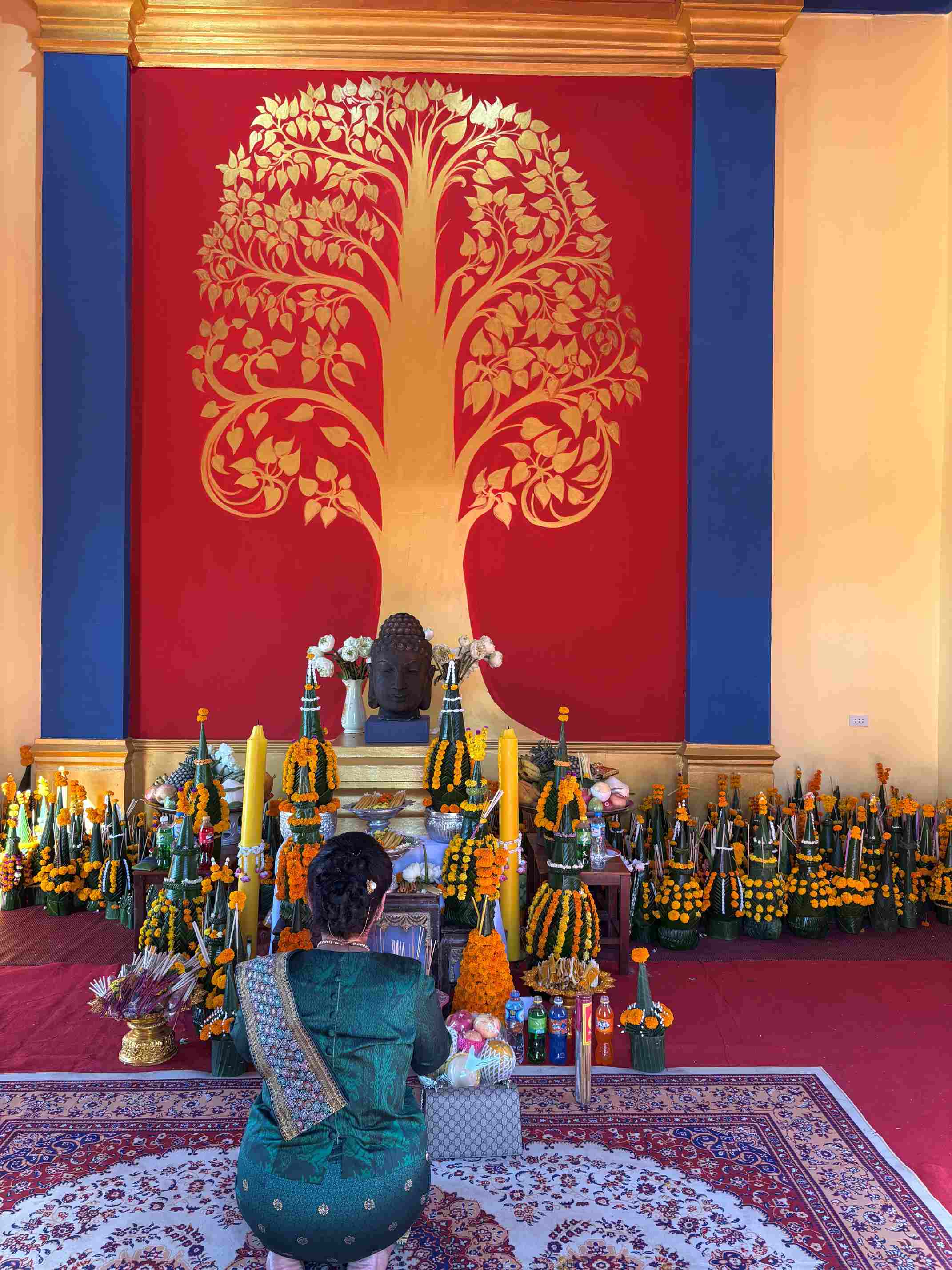 なお、ワット・プーに由来する仏頭に関し、日本とラオスの間で不思議なご縁がありましたので紹介します。かつてチャンパサック県の村民が所有していたある仏頭は、2012年頃、現地の骨董商が購入し、タイ経由で日本に持ち込まれたと伝えられています。その後、毎夜この仏頭が夢枕に立ち、ラオスに帰りたいとの希望が伝えられたそうで、所有者から在名古屋ラオス名誉領事館へ相談されたことを契機に、2013年、ワット・プー博物館へ返還されました。2025年12月5日に、在名古屋ラオス名誉領事館とチャンパサック県が共同で、ワット・タート寺院において、日本からラオスに返還された仏頭を安置する御堂「老日庵(ラオニチアン)」の完成式を開催しました。ワット・タートは、18世紀から20世紀中ごろまで、同地に存在したチャンパサック王国創設に関わった高僧パ・クー・ポンサメックの仏塔を安置し、王が主催する儀式の場として用いられた由緒ある寺院 です。この度、日本ラオス国交関係樹立70周年の節目に合わせ、「日本ラオス仏頭友好親善プロジェクト」として、両国の寄付でワット・タート内に老日庵が建立され、新たな観光スポットが誕生しました。