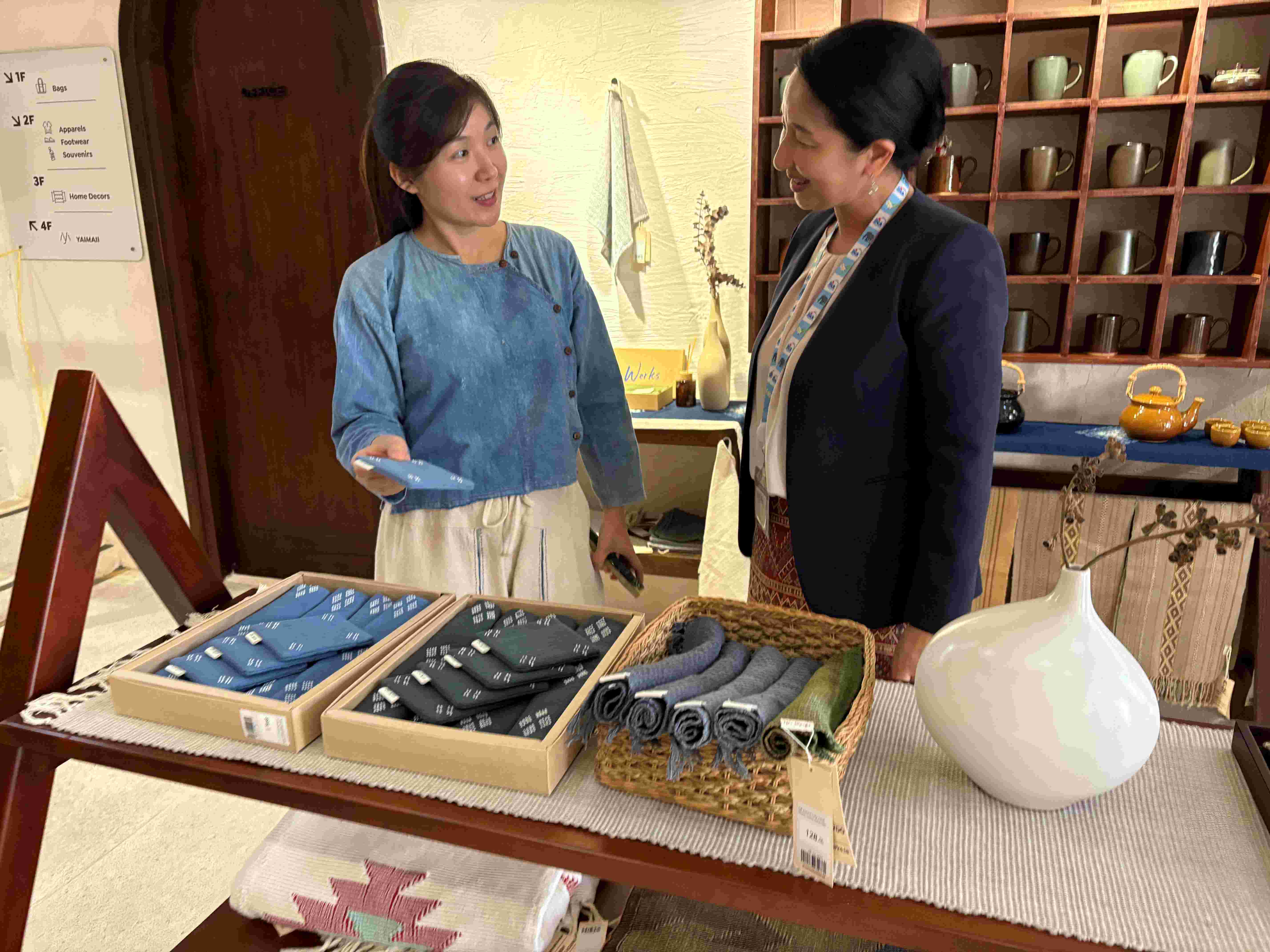 トゥッタさん:持続可能なマーケティングを体系的に習得したいと考え、LJI SUSUには、第1回(2021年)と第3回(2025年)のビジネスプラン・コンペティションに参加しました。第1回目は、Yaimaiiというブランド立ち上げのビジネスプランで参加しましたが、入賞することは叶いませんでした。次の第三回では、TALAEW Craft & Sustainable Design Center (以下、TALAEWセンター)として、自社だけでなく産業全体を後押しする可能性のあるハンディクラフトのトレーニングセンター立ち上げのビジネスアイデアで参加しました。そこで、手工芸家の技術向上、製作過程の効率化、収入向上に裨益するということが評価され、JICA最優秀賞をいただくことができました。現在ラオスでは、布を織る手仕事の職人が減っており、ラオス伝統の織りの技術が失われていくのを危惧しています。現在、TALAEWセンターのトレーニングを通じて高品質の布を織れる人材を育てています。高品質な製品を高価格で売るサイクルを作ることで、「織り手の収入向上」「人材の確保」「ラオスの伝統の保存」に貢献していきます。将来的には、日本やEUには輸出することが目標です。