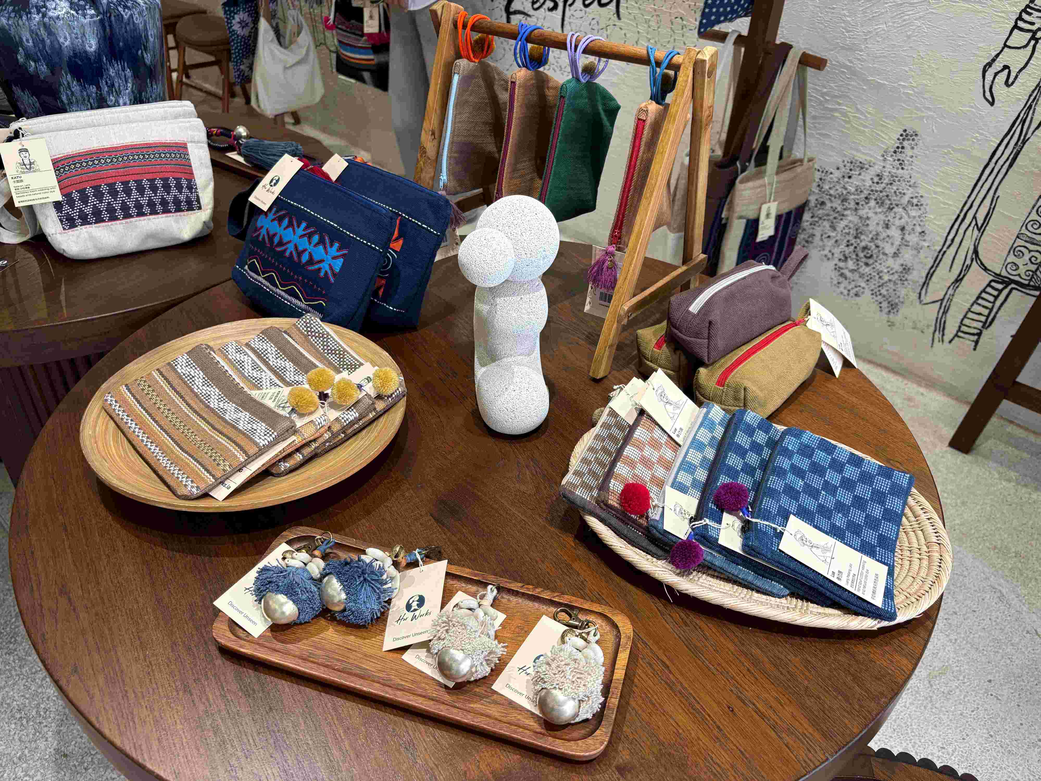 ドゥアンマニー・フアンカムセーン氏(以下、トゥッタさん):ありがとうございます。高校卒業後は、家業の宝石店を手伝ったり、歌手をしていました。自分が歌う場所を作りたいと自らお店を開いたのですが、うまくいきませんでした。そのとき、多くの観光客が街の中心部を歩いているのを見て、お土産物屋を開くことを思いつきました。最初は、布について何の知識もなかったのですが、タラートサオ(市場)で買ってきた布を自分でデザインして商品を製作し、3m×3mくらいの小さなお店で販売を開始しました。すると瞬く間に商品が完売したのです。その後、少しずつお店の規模を拡大していきました。タラートサオに布を探しにいく中で、その布がどうやって作られるいるのかに興味を持つようになりました。ある日、私の琴線に触れた布の製造元を探し、現地をたずねたところ、少数民族の方が作られた布であることを知りました。その後、実際に自分の足で少数民族の生産者を訪ねるようになりました。そこから交流が芽生え、現在の少数民族のハンディクラフトを中心としたHer Worksの礎になったのです。美弥子所長が創業当時からお店に通ってくれていたと聞いて、とてもうれしいです。