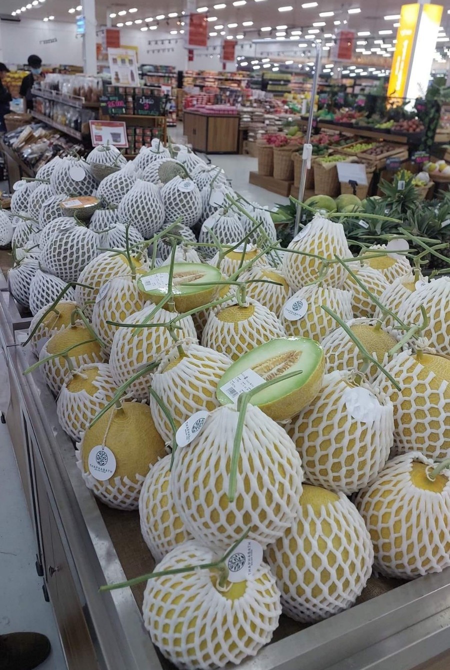 メロンは首都ビエンチャンのスーパーマーケットで販売されている