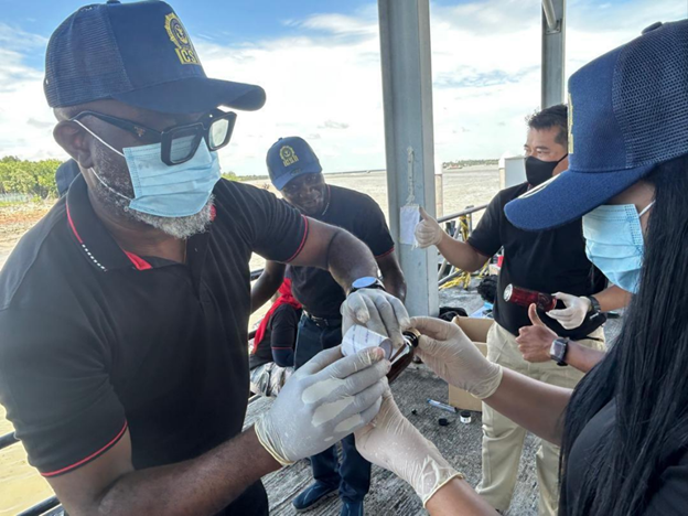 次に法執行分野です。マレーシアの海域でも違法漁業や密輸が発生しており、時に取り締まりの現場では相手が激しく抵抗することもあります。そこで必要となるのが「制圧技術」です。これは、自分や仲間の身を守り、相手も傷つけることなく抑え込むための技術で、日本の海上保安庁が長年培ってきたものです。実際にマレーシアの巡視船と日本の巡視船が合同で訓練を行い、身に着けた技術を試す場も設けています。
