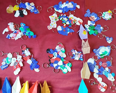 - 子どもたちは説明を真剣に聞き、完成したキーホルダーを喜び、友達同士で見せ合う姿が見られました。