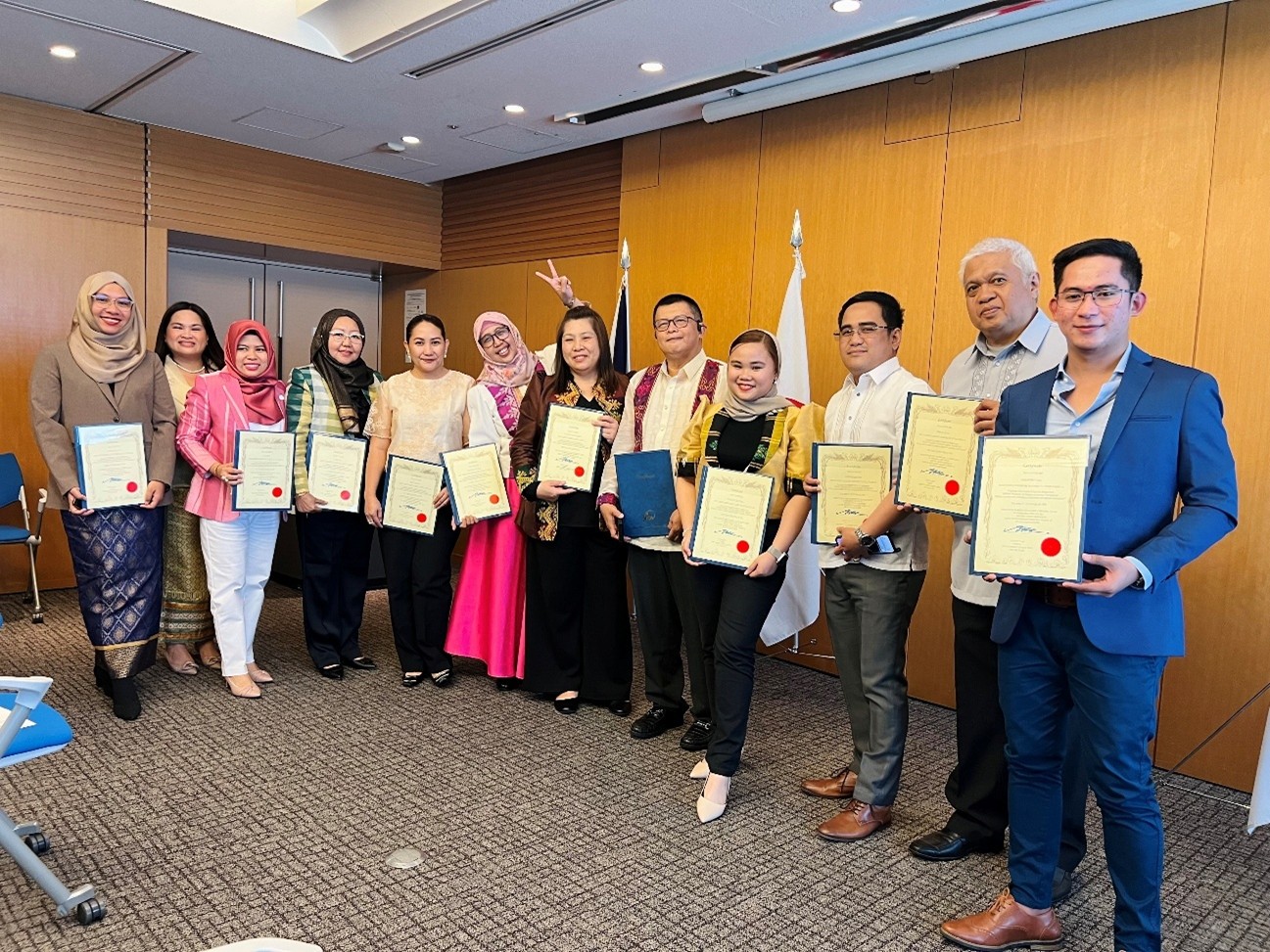 JICA関西センターでの研修を修了したイェドさん(右) とBARMMから研修に参加した行政職員・起業家たち