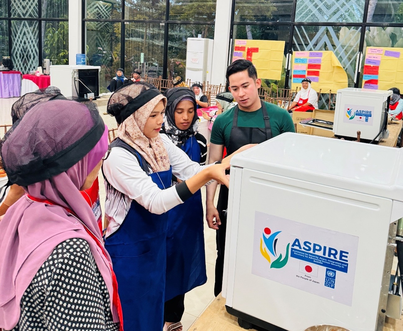 研修後は、日本政府が支援する無償資金協力「バンサモロ・ムスリム・ミンダナオ自治地域における私有の小型武器及び軽兵器の管理・削減支援計画」(ASPIRE:Assistance for Security, Peace, Integration, and Recovery for Advancing Human Security in BARMM、国連開発計画(UNDP)との連携)の支援対象地域であるバシラン州において、元戦闘員(MILF、MNLF、アブサヤフ等)の家族(特に女性)を対象にパン作りの技能訓練を無償で行っています。
