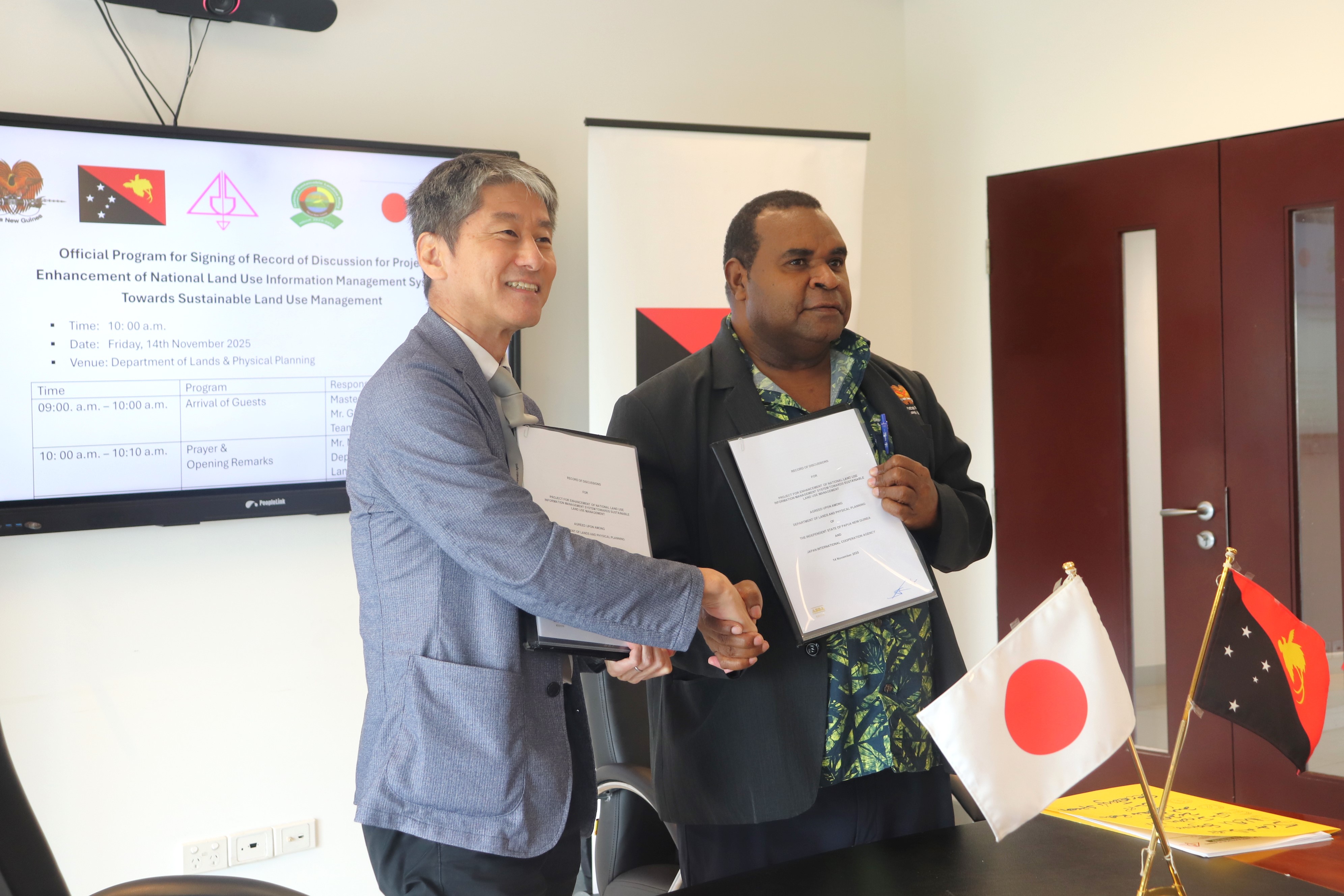 国際協力機構(JICA)は、11月14日、パプアニューギニア独立国政府との間で、技術協力プロジェクト「持続可能な土地利用情報管理に向けた国家土地利用情報管理システム強化プロジェクト」に関する討議議事録(Record of Discussions:R/D)に署名しました。