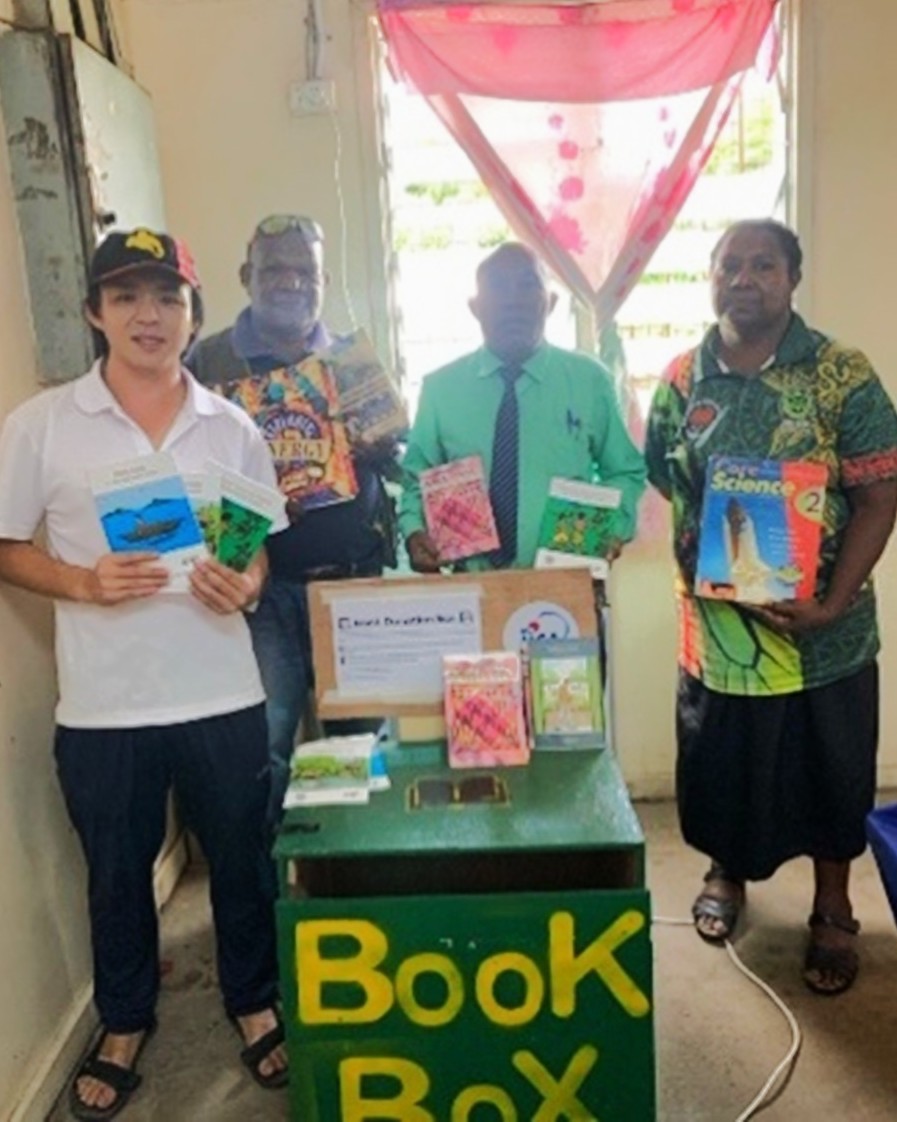 パプアニューギニア政府教育省の協力のもと、庁舎内にドネーションボックスを設置し、すでに家で読まなくなった本の寄付を呼びかけました。