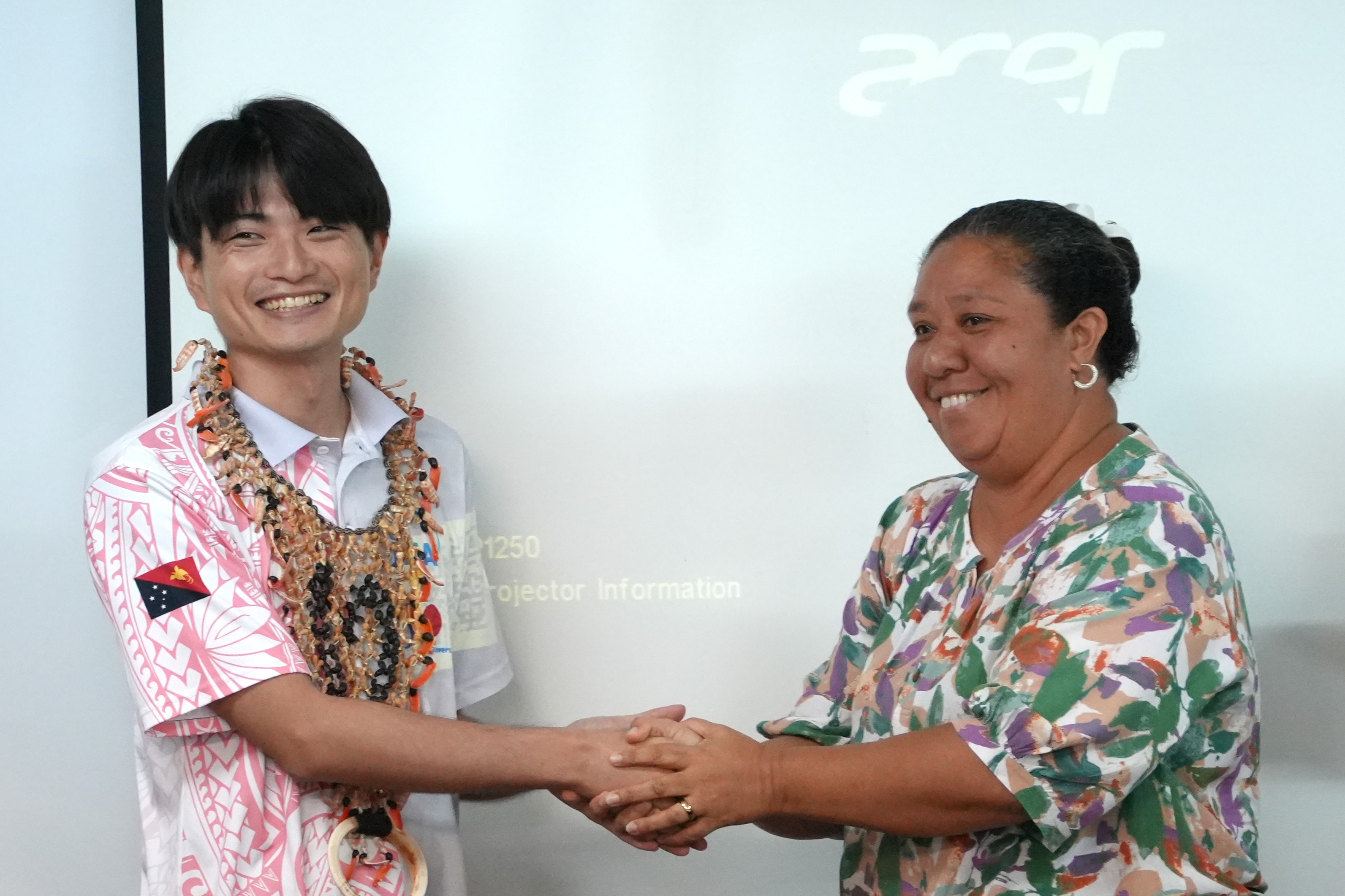 パプアニューギニア東部、ミルンベイ州アロタウ。この州のコミュニティ開発局では、日々、多くの市民が生活上の困りごとを抱えて相談に訪れています。家族問題、ジェンダーに関わる課題、地域社会でのトラブル―。その一つひとつに向き合う現地職員の業務を「仕組み」から支えたのが、2025年度に帰国するJICA海外協力隊員・望月賢人さんです。