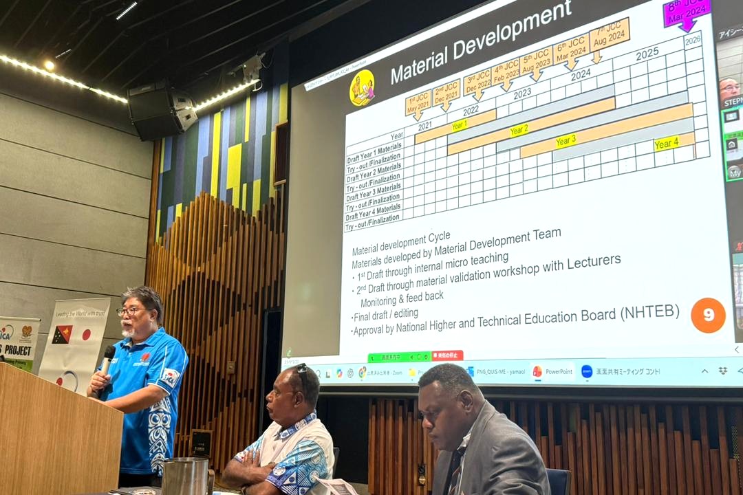 今回の会合には、高等教育省(DHERST)、教育省(DoE)、国家計画モニタリング省(DNPM)、在パプアニューギニア日本国大使館、JICA、そしてプロジェクト専門家が出席し、これまでの成果の振り返りと、終了後の持続的な取組について活発な議論が行われました。