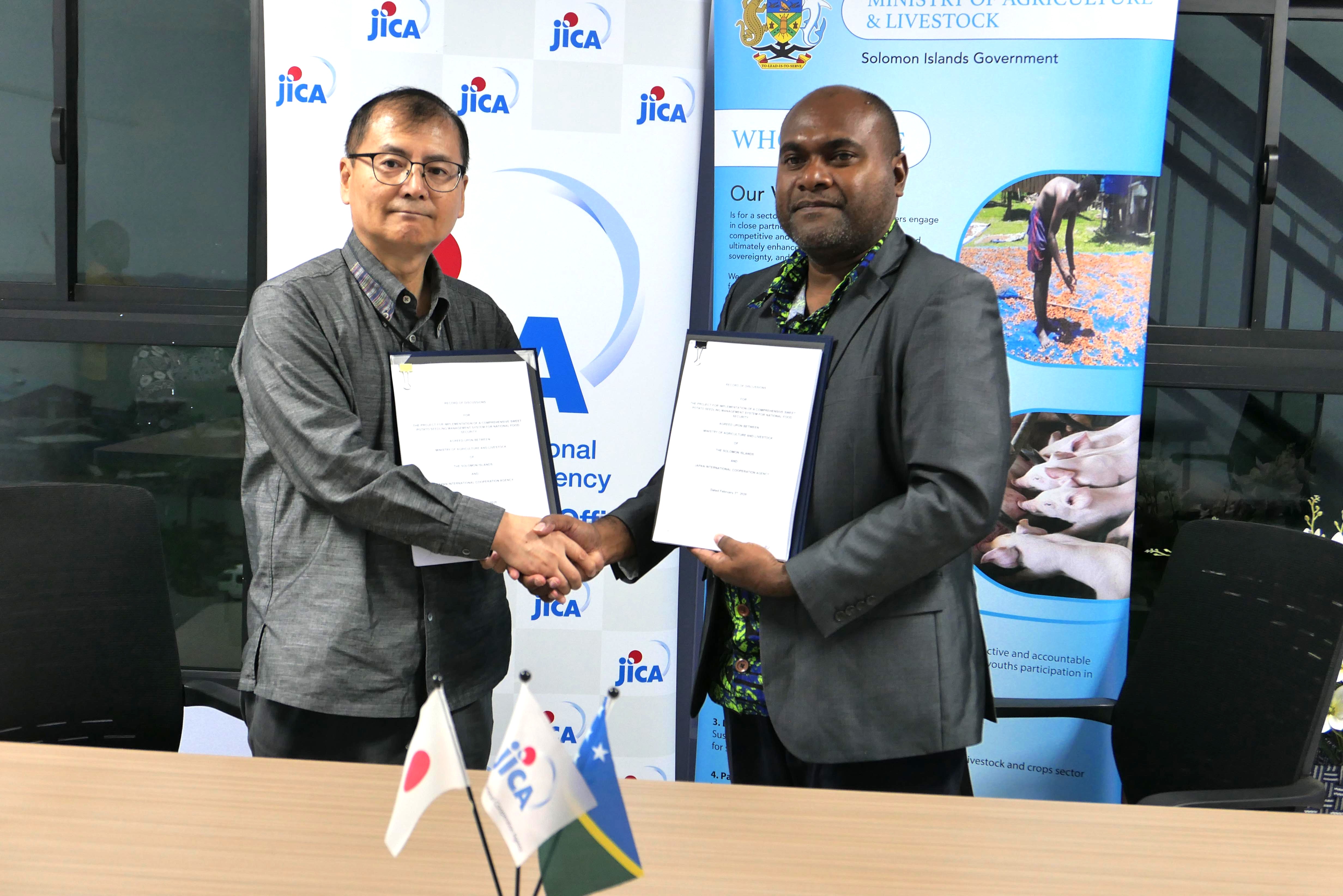 ソロモン諸島向け地球規模課題対応国際科学技術協力プログラム(SATREPS)討議議事録の署名:食糧の安定的増産を実現する包括的サツマイモ種苗管理システムの実装