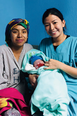 配属先で出産した同僚看護師とその子と。同僚の希望で出産に立ち会った