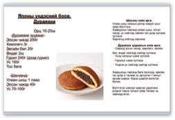 河原さんが作成した「どら焼き」のモンゴル語版レシピ