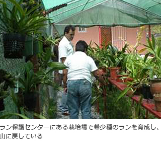 「APROVACA(ラン栽培者協会)」は、そうした状況のなか、住民たちが自ら野生ランを保護することを目的に、2001年に設立されたNGO組織だ。APROVACAが運営する「ラン保護センター」では、絶滅が危惧されるランをセンター内で栽培し、山に植え戻したり、ランの栽培技術を住民たちに教えたりしている。また、地域の住民をガイドとして雇用し、国内外から訪れる観光客を対象としたエコツアーを実施するなど、野生ラン保護と住民の現金収入確保とを両立させるための活動を続ける。