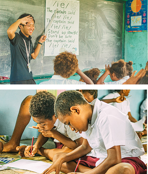 パプアニューギニアへは、困難を抱えた子どもたちに寄り添いながら健全な育成を目指す「青少年活動」の隊員として赴任して、現地の教会が運営する小学校で、英語と算数を教えていました。オロ州ポポンデッタという街で小学3年生の担当をしていたのですが、生徒に配布されるべき教科書が満足に行き渡らず、机や椅子も満足にない状態でした。子どもたちが教師の板書を写すだけの授業が行われ、学習環境が整わないことも、生徒の基礎学力不足につながっていると感じました。