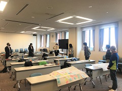 研修最後のふりかえりでは、「これまでの案に愛着がわき、捨てられなくなっている」「それぞれの意見でワークショップの流れがつくられていく過程を楽しみながら行えた」などの意見が共有されました。